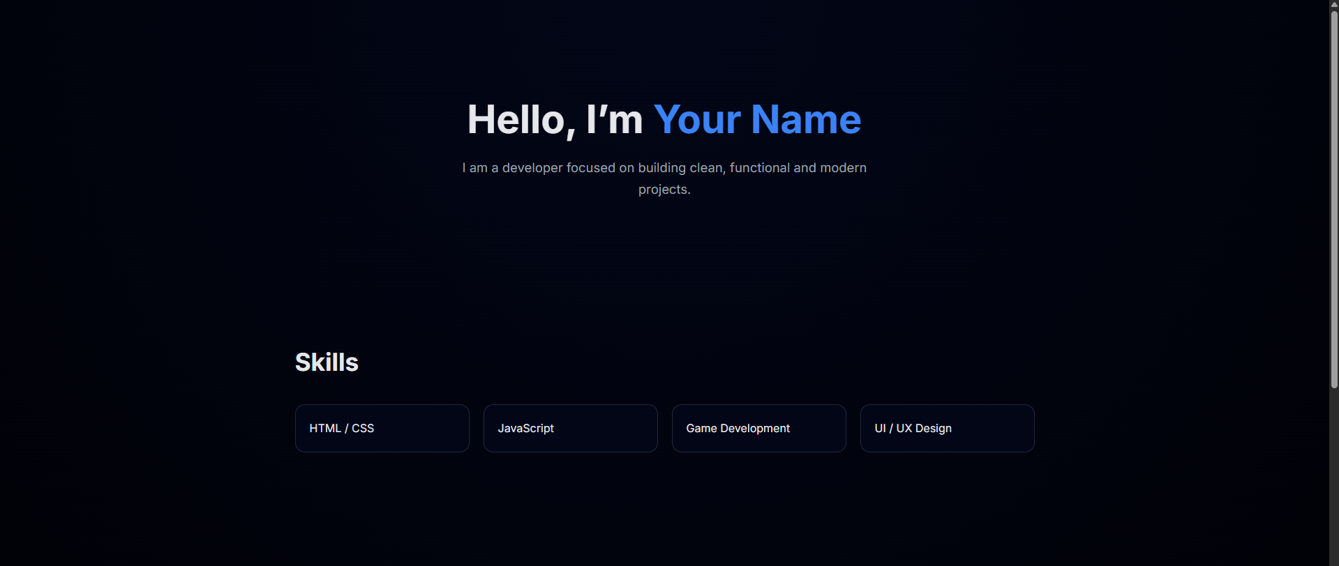 This template is designed for developers, game creators, freelancers and students who want a professional online presence without using frameworks, build tools or complex setups.